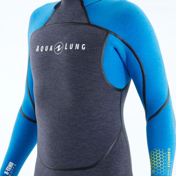 Die Overalls der Linie AquaFlex bieten mit Superstretch-Neopren ultimativen Komfort und Qualität. Komplett aus Superstretch-Neopren und mit versiegelten Nähten gefertigt hebt sich die Qualität des AquaFlex vom Wettbewerb ab. Die Anzüge sind aus AquaFlex Neopren hergestellt, das drei Mal so elastisch ist wie herkömmliches Neopren. Dadurch lässt sich der Anzug leicht an- und ausziehen und bietet jeder Statur eine hervorragende Passform. Die Nähte sind mit Flüssiggummi versiegelt, wodurch sie haltbar und vor dem Ausfransen geschützt werden, außerdem bleibt das Wasser draußen und die Wärme drinnen. An den Bündchen wurde die verschmelzende X-Tend-Technologie angewandt, die für minimales Ausfransen bei maximaler Elastizität sorgt. Am linken Handgelenk befindet sich eine rutschfeste Silikonapplikation, so verrutscht der Tauchcomputer nicht, auch wenn das Neopren komprimiert wird. Die innenliegenden Brust- und Rückenteile verfügen über ein Thermolaminat, das die Wärme am Rumpf hält. Den AquaFlex Overall gibt es in der Materialstärke 5 mm.