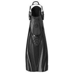 Diese offene Flosse ist eine ausgezeichnete Wahl für kältere Gewässer und für alle Taucher, die eine robuste und kraftvolle aber dennoch leichte Tauchflosse bevorzugen. Durch die effektive Stromlinienform bewirkt sie ausgezeichneten Vortrieb. Das Flossenblatt ist am Mittelfuß aufgehängt, um möglichst effizient die Energie des Fußschlags zu nutzen und optimal in Vortrieb umzuwandeln.