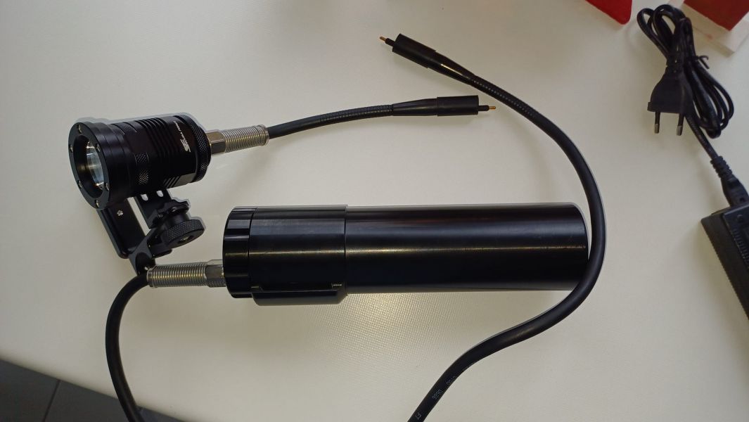 die Lampe wird mit Kanister 23,8 amp und Lampenkopf 4000 Lumen inkl. Ladegerät geliefert