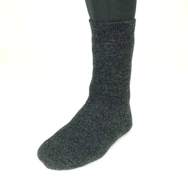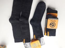 Der Termico 2 ist unsere Aussenlage und mit seiner Form genau darauf abgestimmt, über dem Base-Layer Termico 1 getragen zu werden. Im Unterschied zu der luftigen und hochflexiblen Frottee-Struktur des Base-Layers ist der Termico 2 wesentlich dicker und vor Allem dichter. Dennoch sorgt sein nahtloses Strickverfahren (gestrickte Ferse, Spitze und Bündchen) für eine sehr gute Flexibilität und perfekte und faltenfreie Paßform. Nach dem Stricken wird der Socken zusätzlich in einem speziellen Prozess gewalkt. Dadurch wird das Material verdichtet und bildet eine sehr feste und dicke Struktur wie man sie z.B. auch von Lodenjacken kennt. Er besteht aus 94% reiner Schurwolle, 5 % Polyamid und 1 % Elasthan.